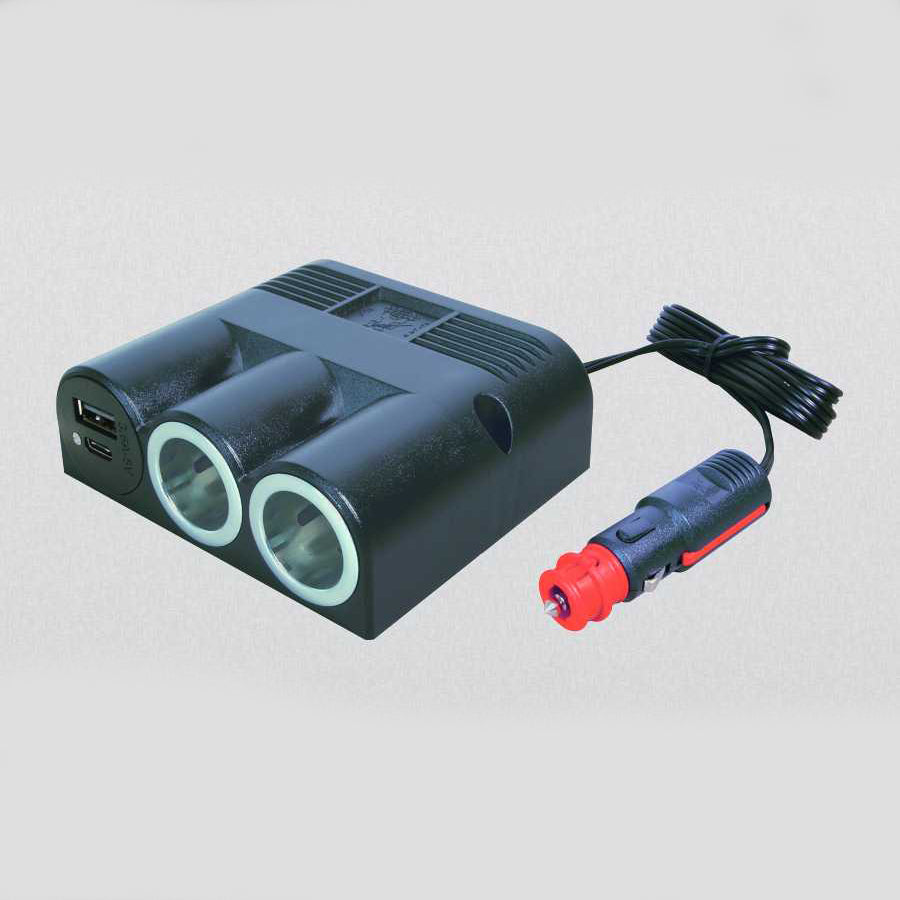 Verlängerungskabel mit 2 Zigarettenanzünder-Dosen + USB-A+C Ladedosen