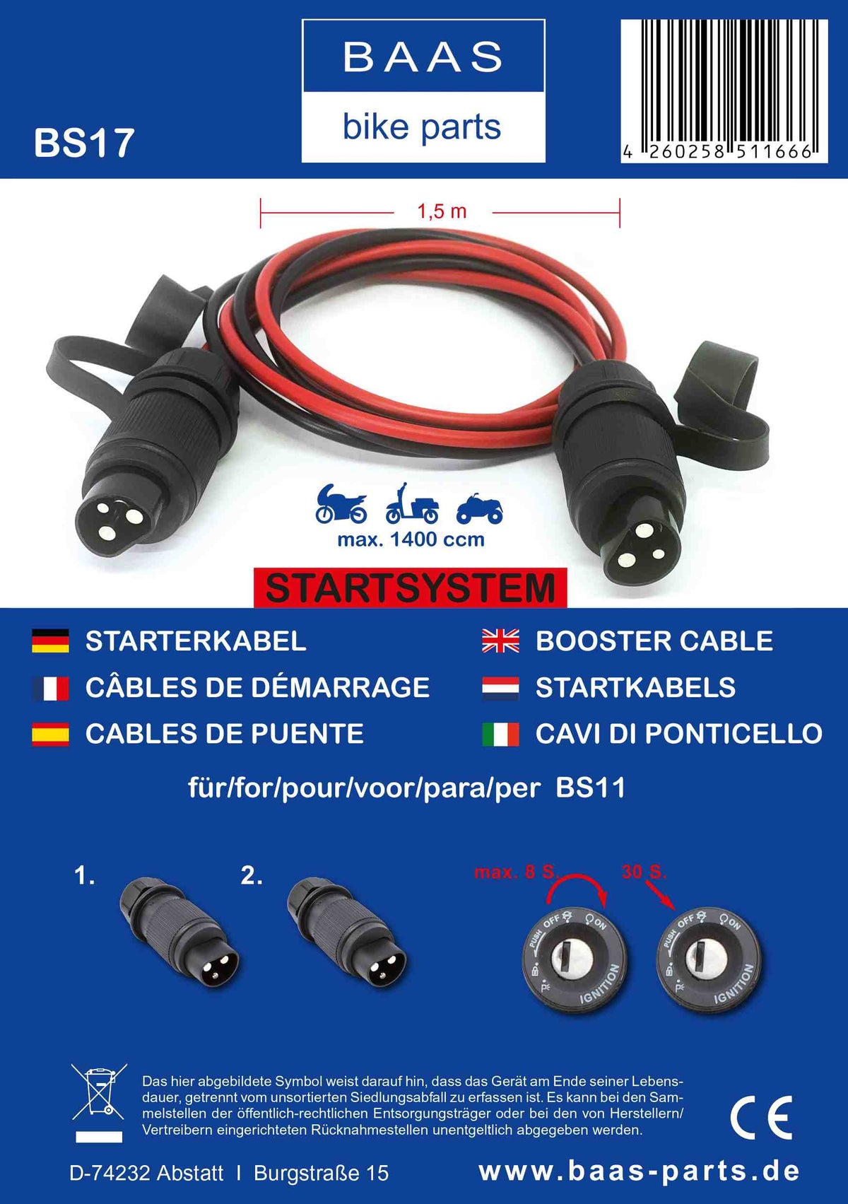 Motorrad Bikestart Starterkabel / STARTSYSTEM – Starterkabel mit 2 Steckern BAAS BS17